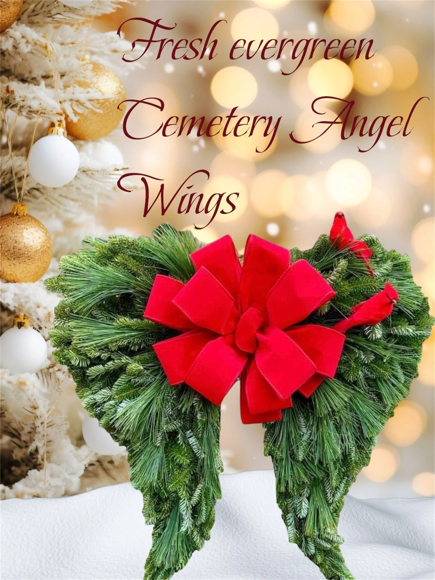 Our beloved Fresh Evergreen Cemetery Angel Wings have become a symbol of remembrance for families across the country.